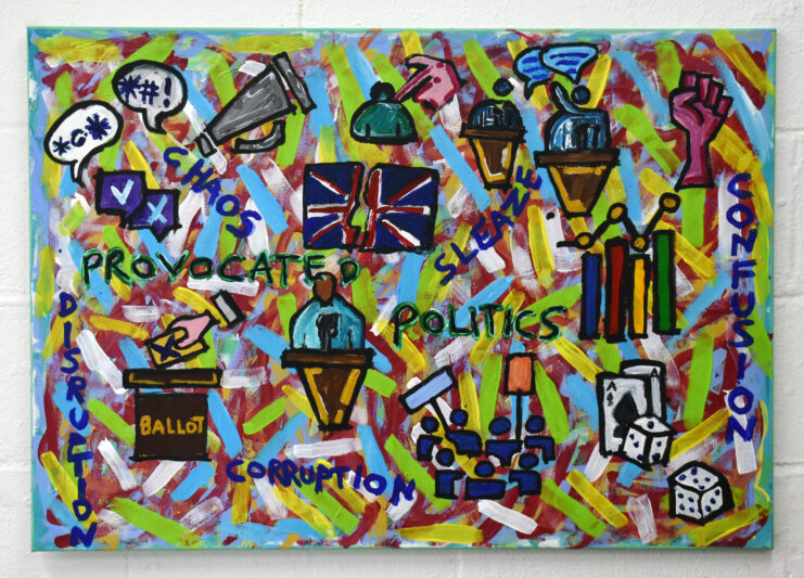 My recent work is inspired by the inequalities of society and what is happening in the world around me, in regards to politics, social change, marginalisation and the impact that Covid and the lockdowns had on our society.