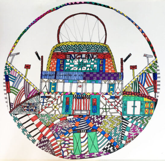 Ian’s work has a strong and unique visual identity – recognisable instantly by its striking lines, patterns and logos. Yet, he is also prolific in his experimentation. Like urban developments, in his art he likes “things to be moving forward, not going back, to keep progressing”. His drawings encourage you to look closer: at the artwork and at the world around you.