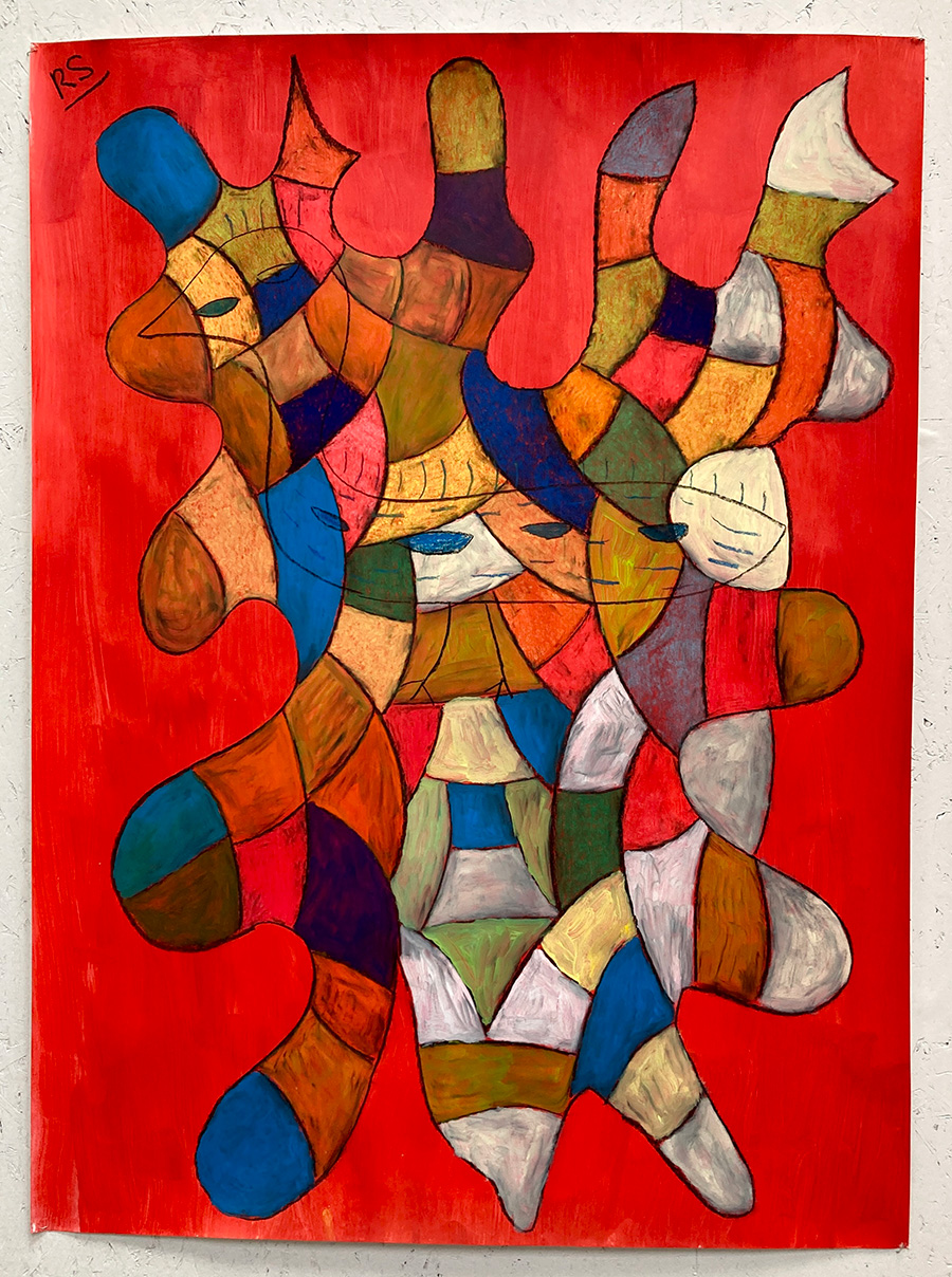 Each piece feels like an invitation into a world where abstraction and representation merge, resulting in works that are as dynamic as they are visually striking. Robin’s use of colour is both intense and nuanced, creating tension between the organic shapes and the figures that emerge within them. As he continues to experiment and develop these works, Robin invites the viewer to step into an abstract universe where the boundaries between creature, form, and figure are constantly shifting.