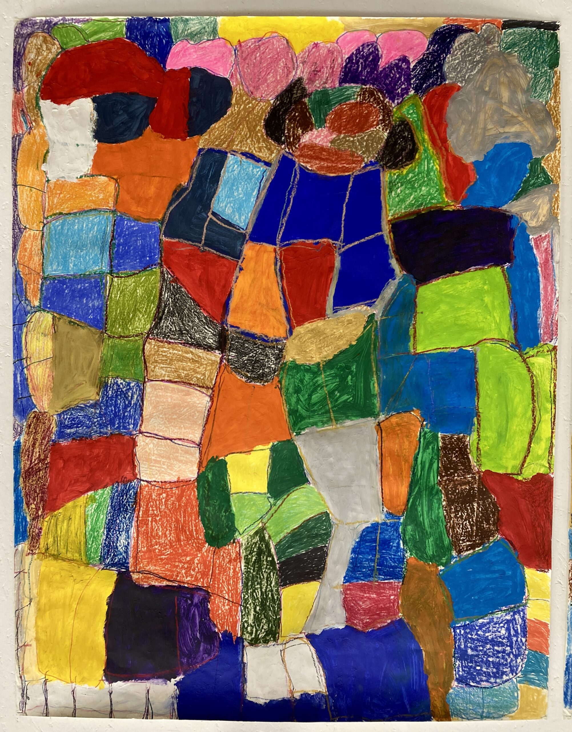 DEREK. Derek Williams. Acrylic, pencil and oil pastel on paper. 2024. 105.5cm w x 132cm h