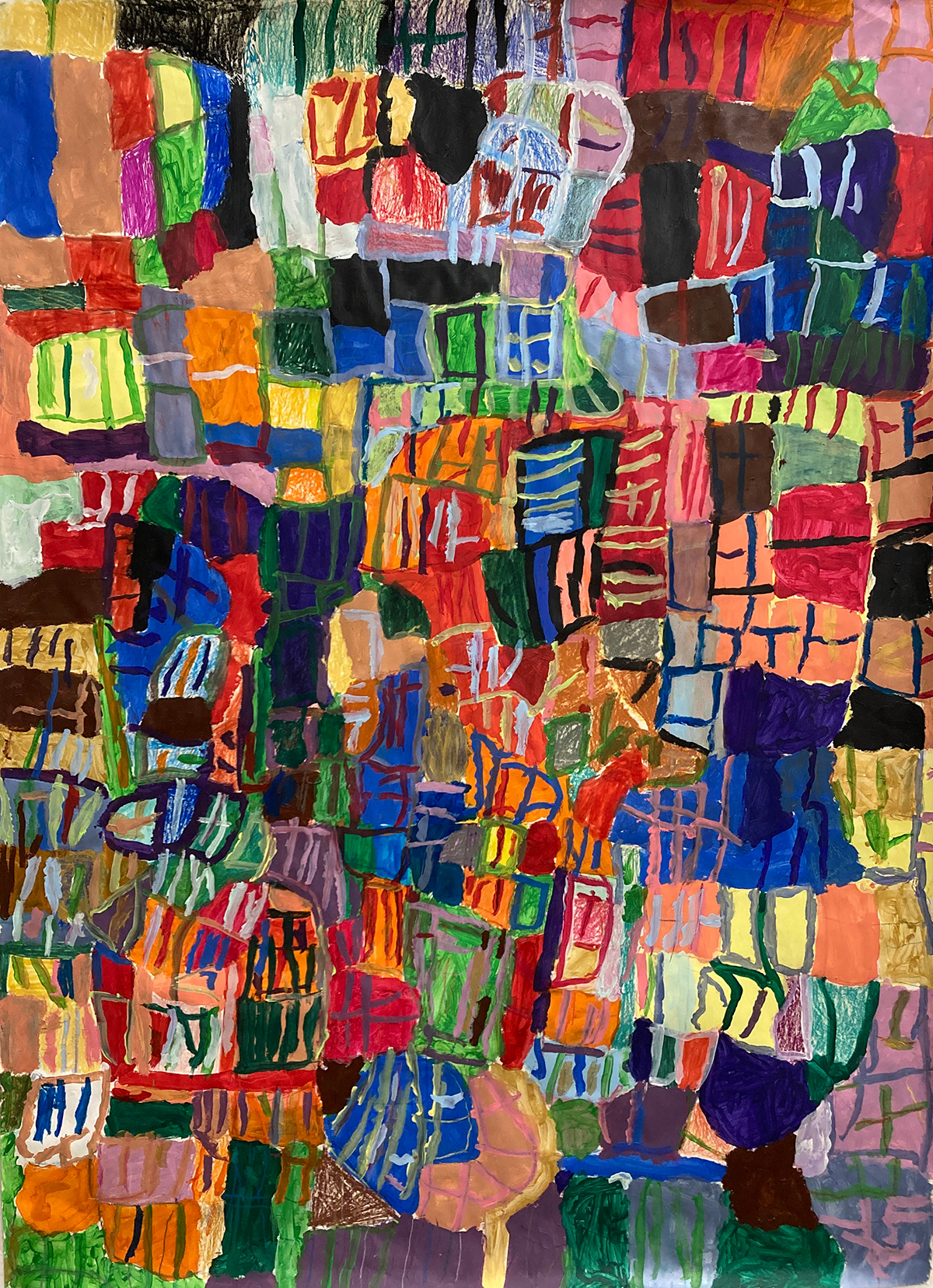 DEREK. Derek Williams. Acrylic, pencil and pastel on paper. 2024. 105.5cm w x 122cm h_web res