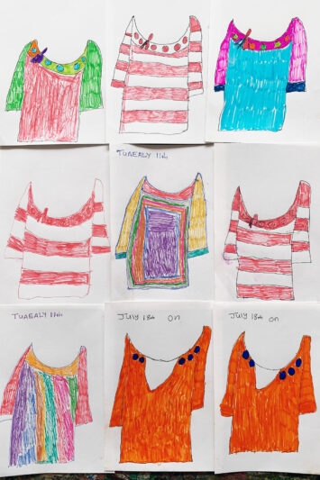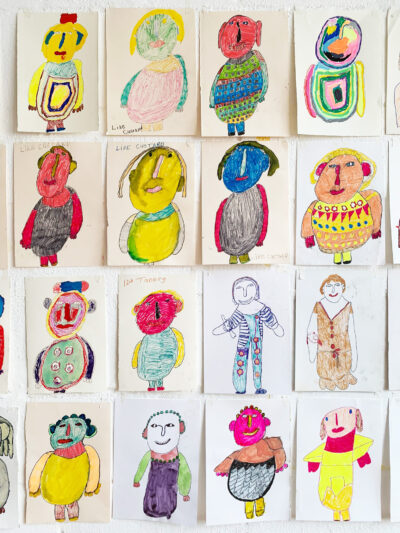 Patricia Morgan is an ActionSpace Cockpit studio artist whose drawings and occasional sculptural works celebrate the textures of daily life, birthdays, Halloween, Easter, Christmas, and other moments of joy and festivity. Her work is rich with colour, character and humour, often shaped by the repetition of familiar themes: cats, clothes, faces, and the weather. Her self-portraits, in particular, form a striking visual diary, capturing shifts in mood, style and focus over time.