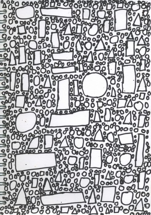 Daniel had been using a projector in the studio to create illustrative images from Brent including a map of the borough and Wembley stadium in his signature rainbow palette. Daniel is continuing to work from home in his sketchbook where he has been tracing around objects and making a personal and indexical map of his immediate environment.