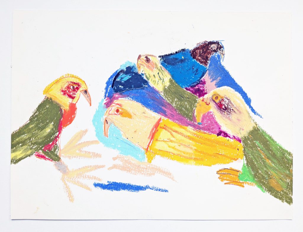 The Birds, September 2025. Oil pastel on paper, 400 x 300 cm.
