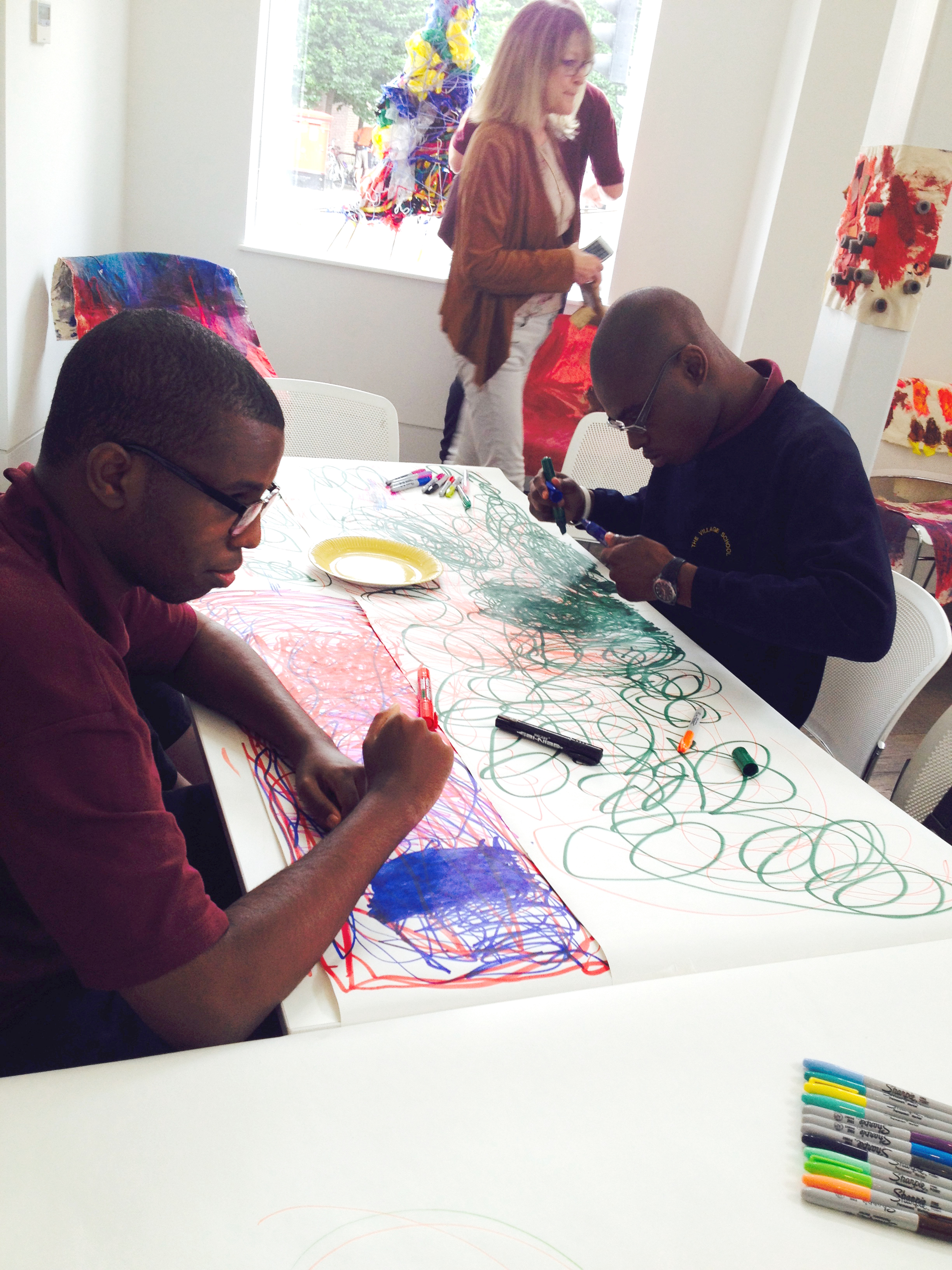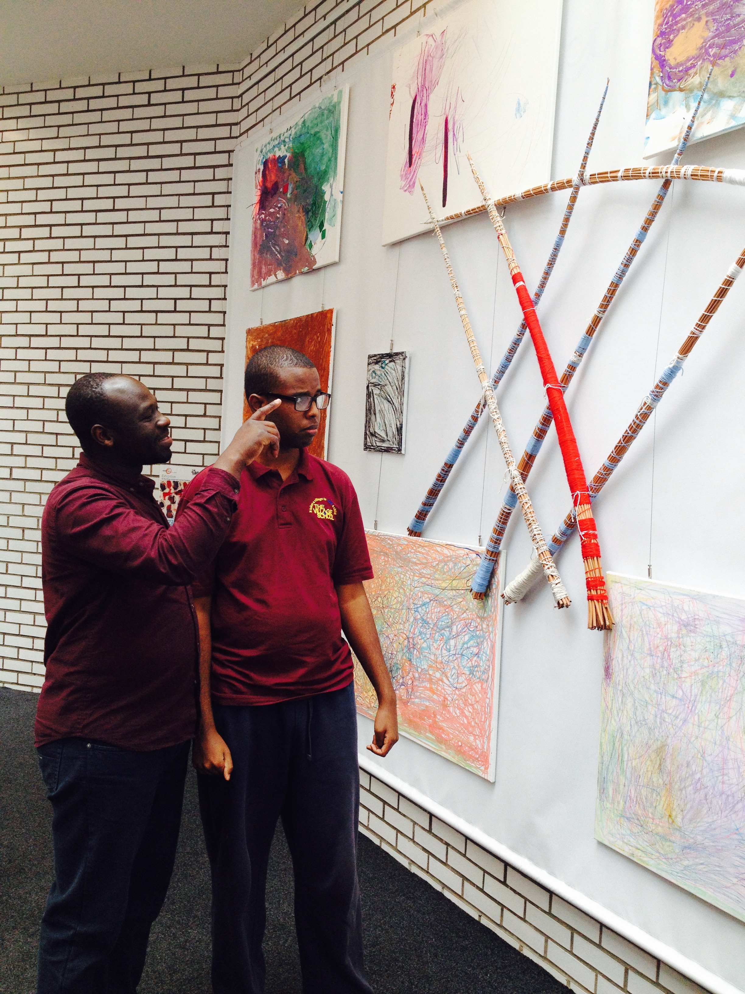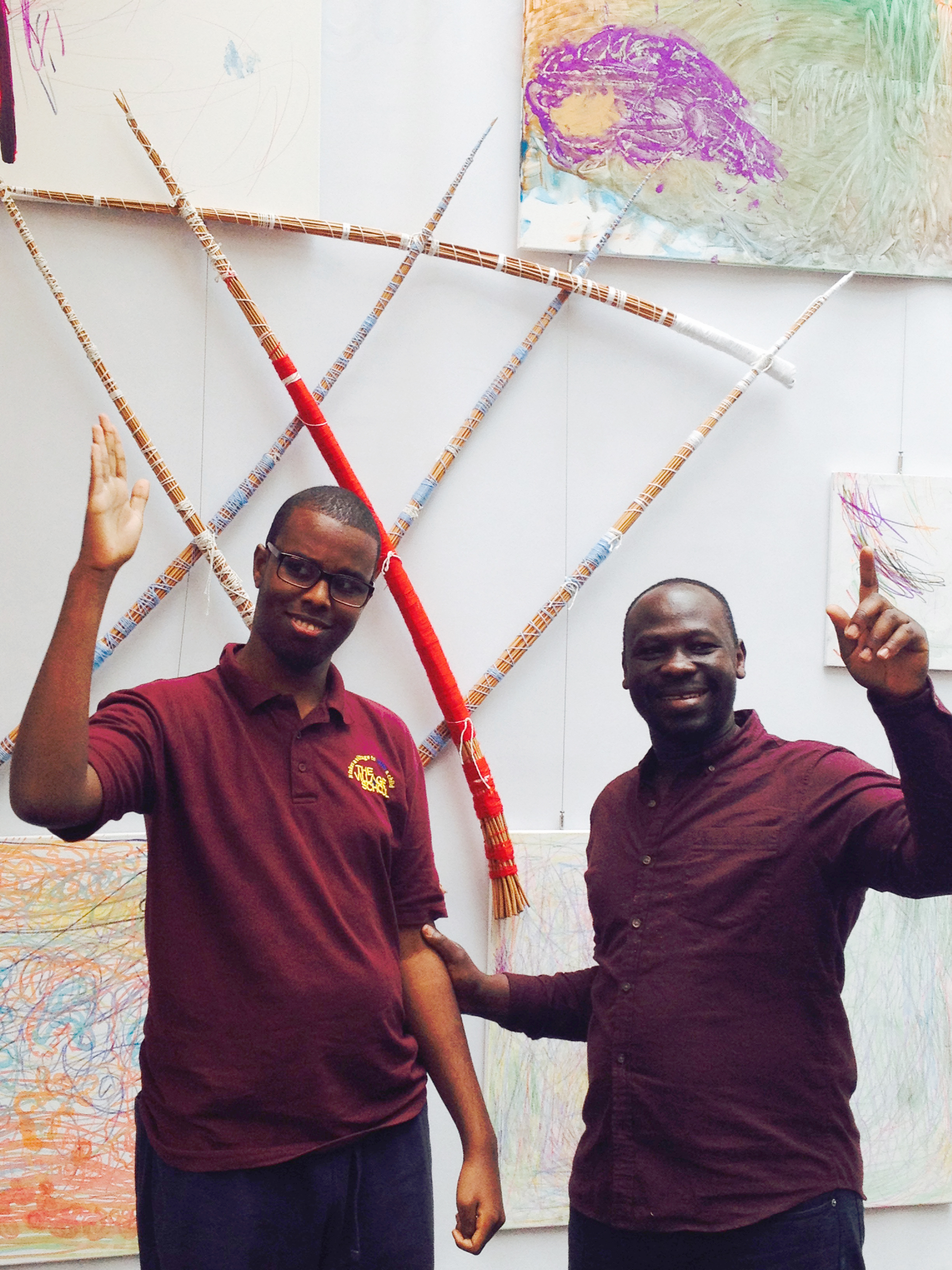 Over the past few months Andrew Omoding has been working with a group of students at The Village School. Alongside Artist Facilitator Patricia Finnegan, he has been running a series of workshops with the students since February 2016 and this exhibition will show the students’ progress, how Andrew has accompanied them with their artwork and their final collaborative art pieces.