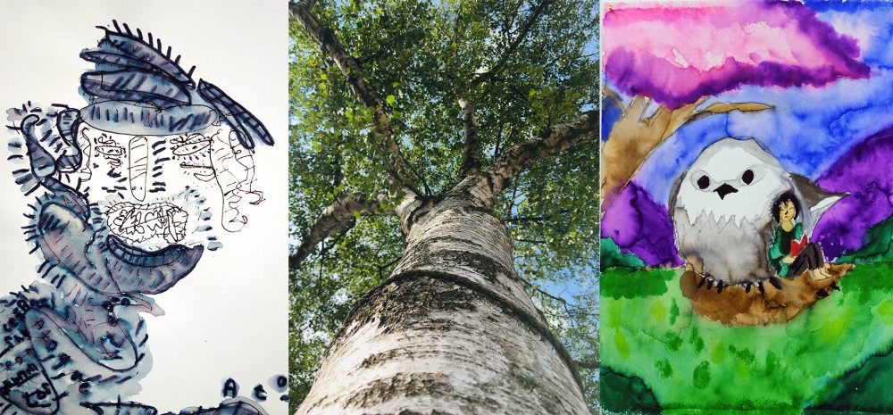 Images: (left) Declan Leslie, Untitled. (middle) Daniel Elms, Silver Birch. (right) Gary Turner, Kipo and the Age of the Wonderbeasts